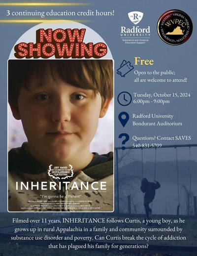 WVPEC cordially invites you to their professional development training "Inheritance". Filmed over 11 years, INHERITANCE follows Curtis, a young boy, as he grows up in rural Appalachia in a family and community surrounded by substance use disorder and poverty. Can Curtis break the cycle of addiction that has plagued his family for generations?